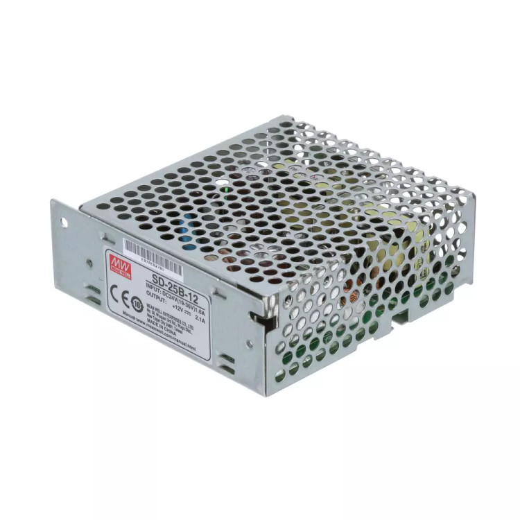 منبع تغذیه SD-25B با ورودی برق 36 ~ 19 ولت DC کار میکند و در سه مدل با ولتاژ خروجی 5 ولت، 12 ولت و 24 ولت در دسترس است.