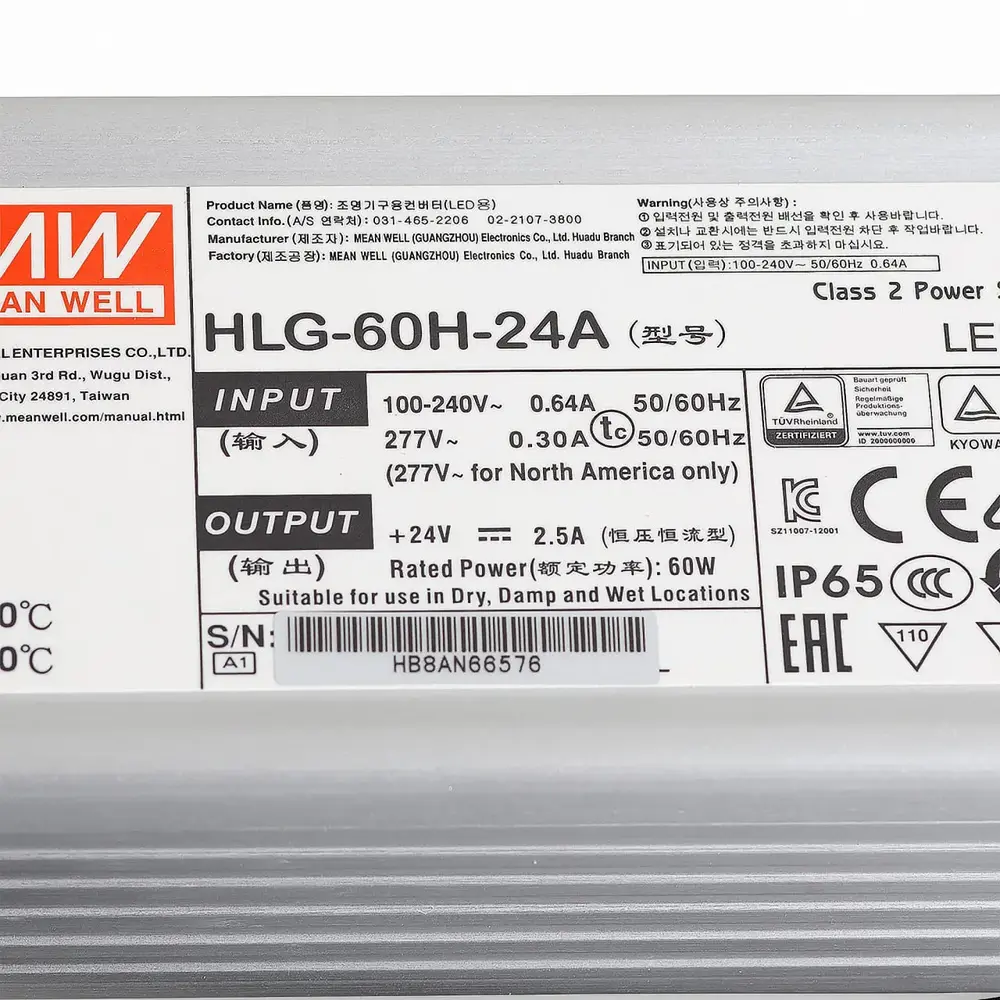 درایور LED بالاترین سطح مدل HLG-60H-24A با توان خروجی 60 وات از نوع CC + CV (ولتاژ ثابت + جریان ثابت) بوده سالهاست در کاربردهای روشنائی بسیار گستردهای در دنیا مورد استفاده قرار گرفته است. سری HLG برنده Taiwan Excellence Award بوده و از محصولات درجه یک صادراتی کارخانجات تایوانی محسوب میشود.