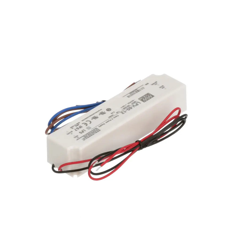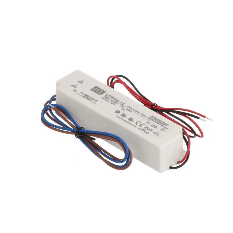 منبع تغذیه درایور ضدآب LPV-60-12 با خروجی 12 ولت 5 آمپر و با ویژگی IP67 و طراحی ولتاژ ثابت در محفظه پلاستیکی ضد آتش UL 94V-0 عرضه شده است. ولتاژ AC ورودی این پاور یونیورسال بوده و محدوده 90 ~ 264 VAC را پوشش میدهد.